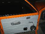 Gray tweed with orange stitching, fiberglassed center console, doors and hopefully i can do the dash