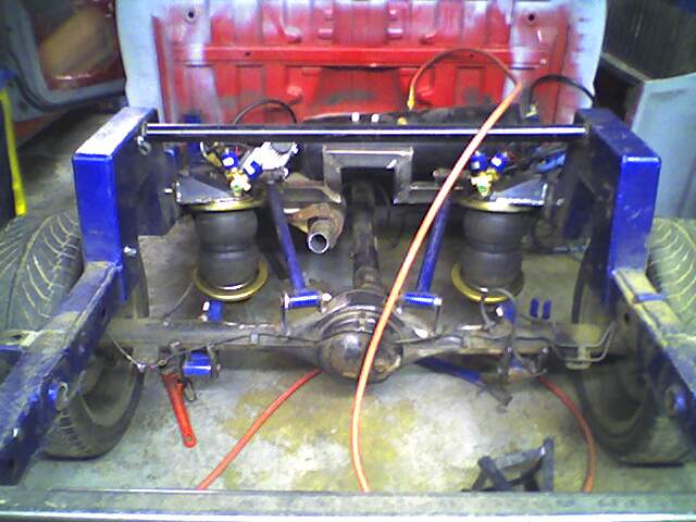 air baged 2600's in the back and 2500's in the fornt, 4 linked with lever setup, 2 5 gallon tank and 550 viair compressor