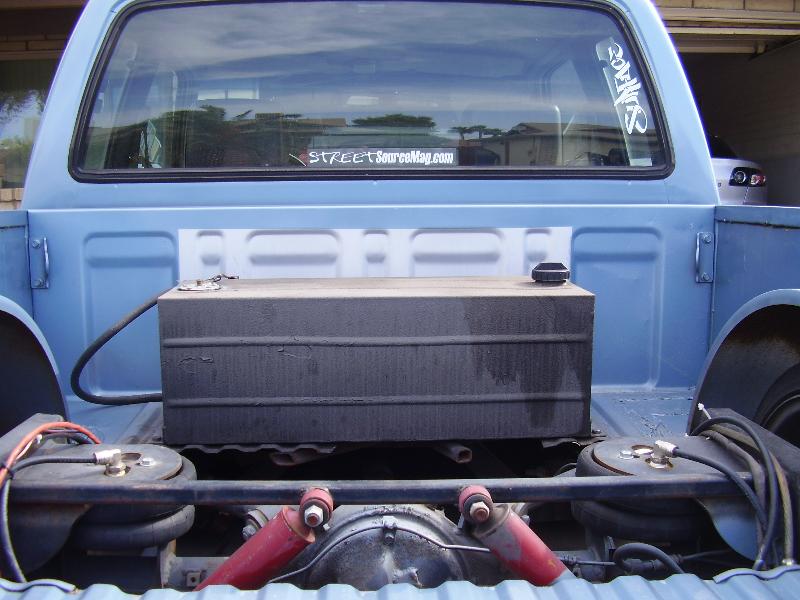 Shaved emblems, gas door, roll pan at Lowboy Motorsports, train horn also