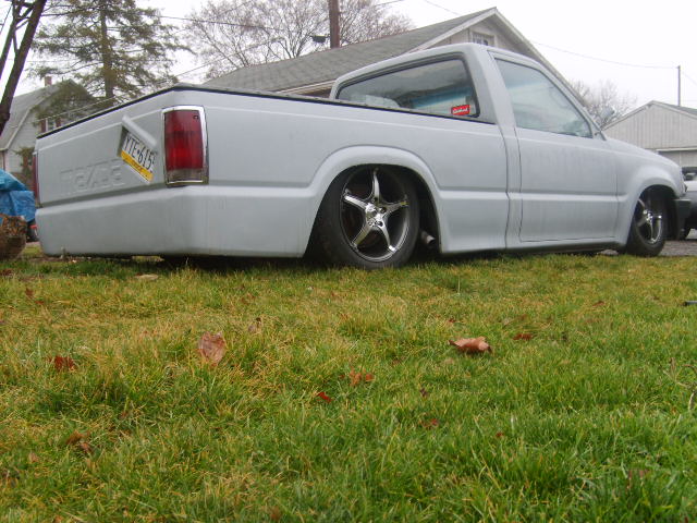 Shaved Keyholes, antenna, handles, gas door, badges, cowl,Drip rails, and b pillar plastics, tailgate is welded shut and rollpan welded on, smooth bedfloor with hand fabbed tubs. Chrome grill & bumper, clear corners & signals.