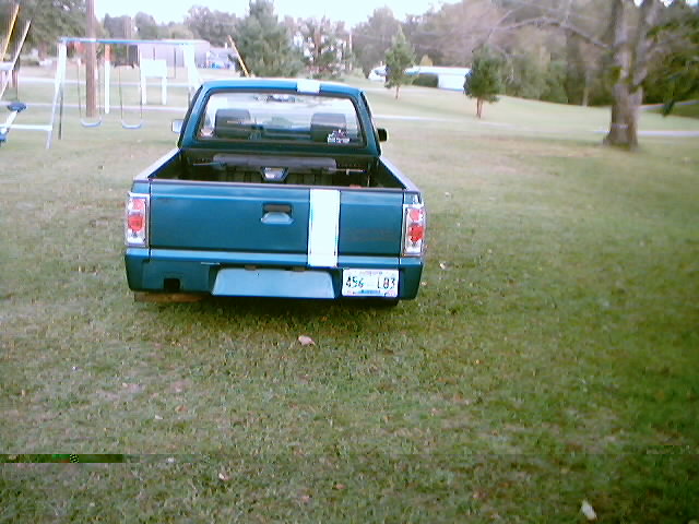 Single off center race stripe LE chrome package FBI chrome grille, euro tail lights, z-71 wheels with 215/40/r16 Hancook HR2 tires removed rear bumper, clear corner lenses