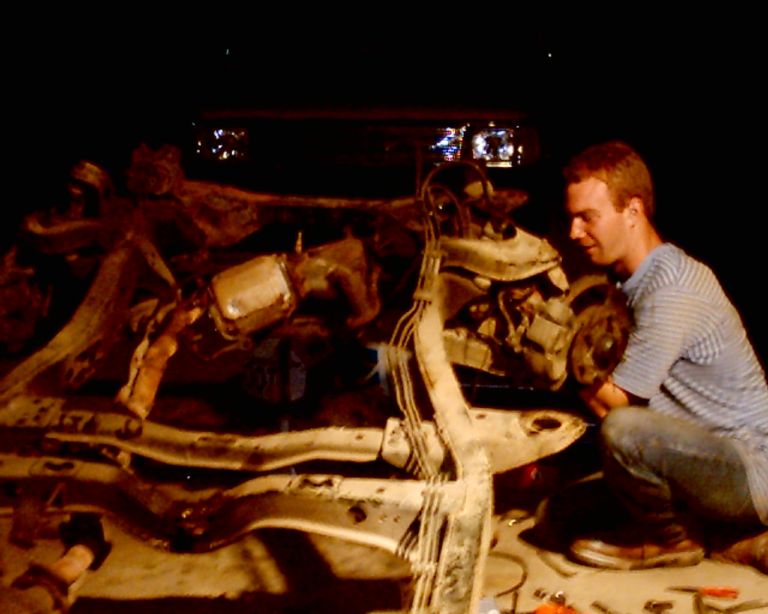 lots of dents painted flat black. the fenders are shaved'but thats it right now.