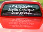 RED: NEW ROOF, DOOR PANELS, REAR BACK SEAT REST, CUSTOM SHIFTER, PEDALS, PAINTED ACCENTS, CHROME ACCENTS ON HEATERS, STEERING WHEEL COVER, INTERIOR NEONS, STROBE LIGHT AND A POLICE FLASHER UNDER THE BED OF THE TRUCK FOR NIGHT TIME SHOW.