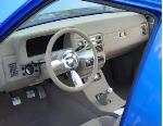 Custom door panels, console, dash, Mazda 626 buckets, interior covered in tan tweed from roof to head liner