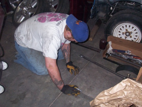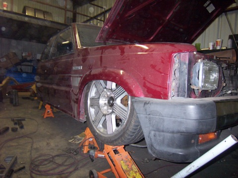 1/2 blitzliuft valves, 10 switches, 1/2 line, suicide doors wishbone, notch, relocated gas tank to rear, 2 VIAIR 480s