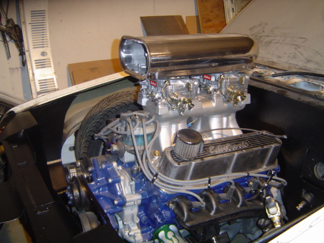 91 mustang 5.0L H.O., ford motorsports z 303 cam, Crane aluminum roller rockers, Highrise tunnel ram intake, dual edelbrock 600 carbs, everythign painted or bead blasted, motor mounts that i fabbed. all work done in my driveway.