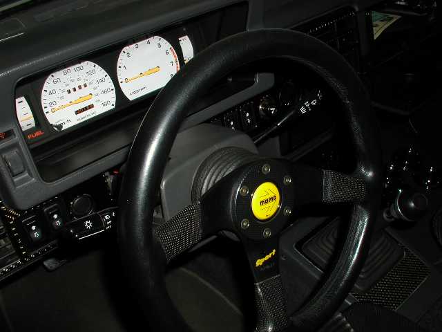 CRX buckets, carbon fibre dash, custom white face SE5 gauges (with tach), momo steering wheel and shift knob, SE5 console.