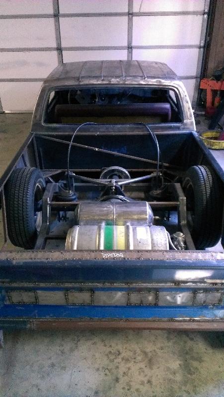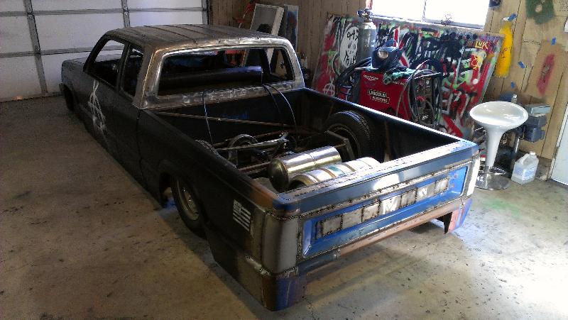 front bagged with slam bags, toyota front spindles, viair 444, aluminum tank, Toyota rear end, wishbone 3 link