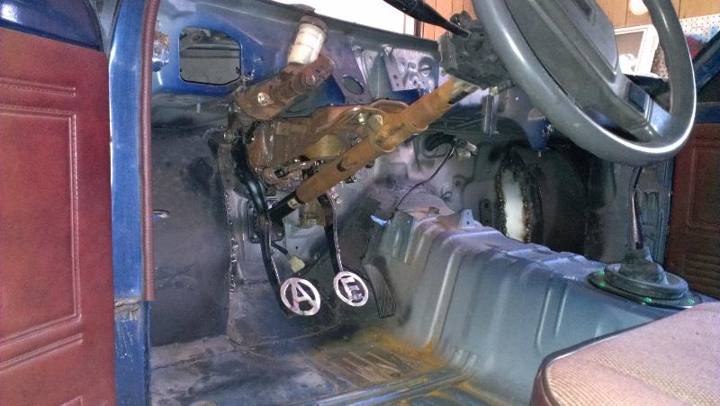 2.5 inch top chop; 4 inch bodydrop; 4 inch bobbed bed; shaved gas door, door handles, tailgate handle, cowl, front corner lights, tail lights; rockers cut an inch from the door and bottoms plated with ¹/4 inch flat bar; modified ford ranger tailgate to make rear skin; early 70's ford f 100 tail lights