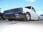 toy front w/ billet, full phantom, shaved rear, chrome mirrors and handles, mercedes white paint