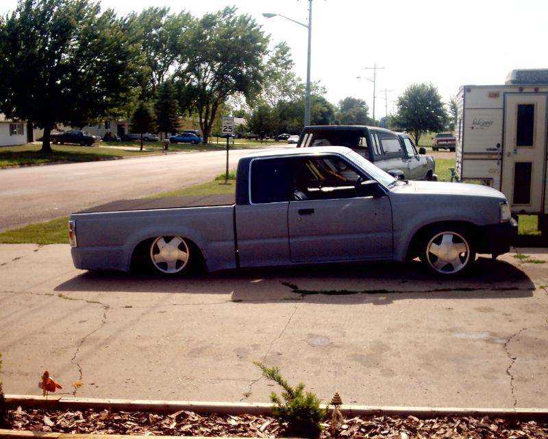 shaved tailgate handle, roll pan, antenna, gas door, chrome bumper and grill with 4x4 endcaps, 4x4 front fenders and box, gas tank from single cab relocated to box, altezzas in the rear and clear turnsignals up front with the h-4 conversion headlights, and a custom made bed cover