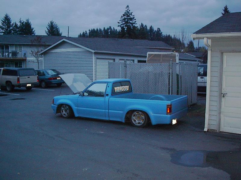 shaved handles, gas door, locks, bed welded shut, inside of bed is flat, and 4x4 sheet metal, roll pan, shaved cowl, pillars and 2600i hood