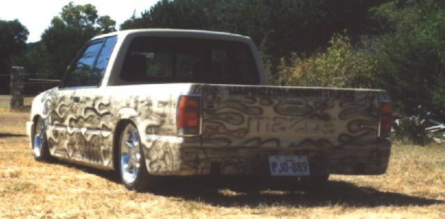 air suspension, older 1980 mazda b2000 rear, custom made drive shaft.