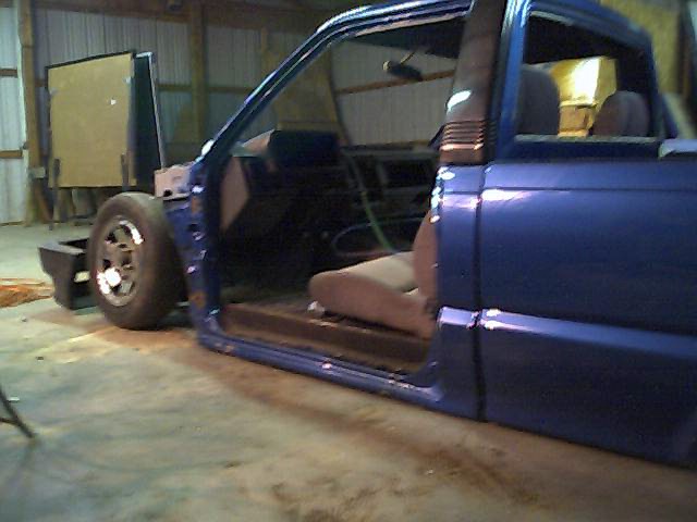 i have shaved the handles, emblems, tailgate, made a custom rollpan to mold the tailgate permently shut. i am currently bodydroppin the truck 4 inches, i have replaced the stock firewall with a straight peice of 16 gauge sheet metal, to make the firewalll as straight as possible. i have also tubbed the firewall to clear up to 20's if i can afford them wanting to shave the corner lights and the tail lights soon. when done withe the b/d and other work goin to paint the truck an different color.