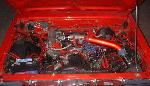 2.2l fuel injection, anodized red custom intake. fender wells cut out, red and chrome all over, oh and its an automatic, (good for hittin switches)