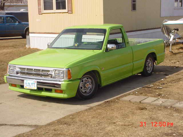 fully shaved crome bumper and and chrome mazda grill it is lime green now(thinking about neon blue graphics on it in a flame soon)
