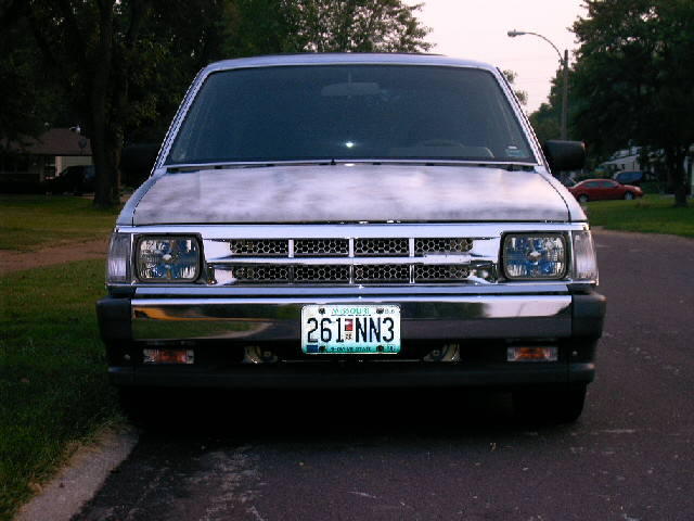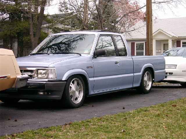 Chrome front bumper and grille, clear corner and bumper lights, shaved door handles, cadillac tail lights, mirror window tint, power removable sunroof, APC H4 conversion headlights. B2600 hood and shaved fenders and cowl wheel tubs in the bed and under the hood
