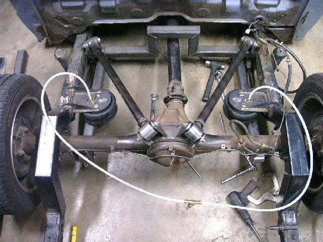Bell tech nitro drop shocks, C notched rear, suicidedoors super lift super pivot 4 link, Slam specialties re72 bags on bars in rear and slam re62 bags in front, 8 1/2 inch blitzluft valves, sanden 708 edc, all 1/2 inch parker fittings, 12 gallon tank ,smc water trap and check valve.
