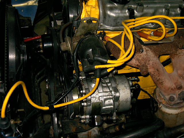 Engine bored .020, new crank , pistons etc. Everything in the motor has either been replaced or machined. So far I have around $1500.00 in the new motor. 32/34 Weber carb, 8mm accell plug wires, NGK spark plugs, accell super coil, pacesetter header, flowmaster muffler, no emissions crap. Motor painted mazda 6 yellow and engine compartment painted alfa romero blue that flips to gold.