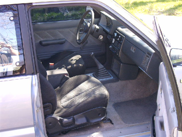 Black and gray ford probe seats with power lumbar supports, instrument cluster with tach, center console, LX door panels with pockets, chrome door handles and window crank rings, power locks, avital 2300 alarm, stereo relocated to pocket below heater controls, tilt steering column from 87 B2000 LX