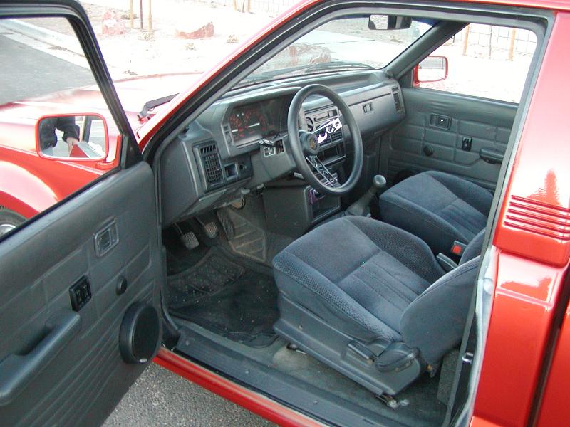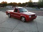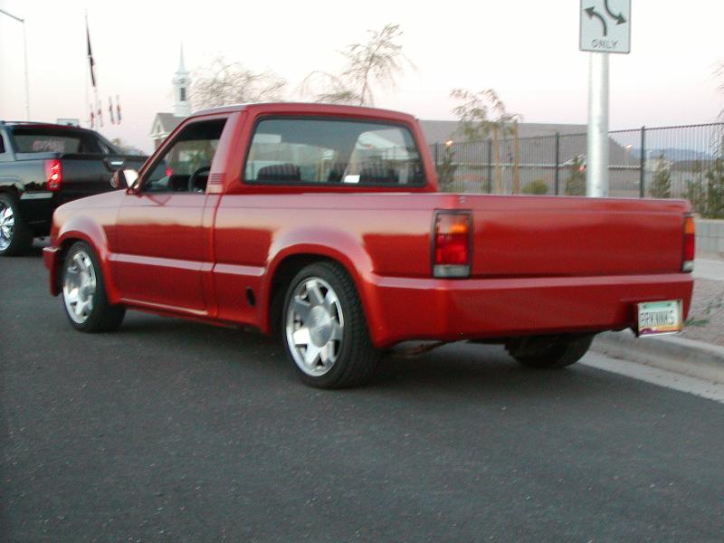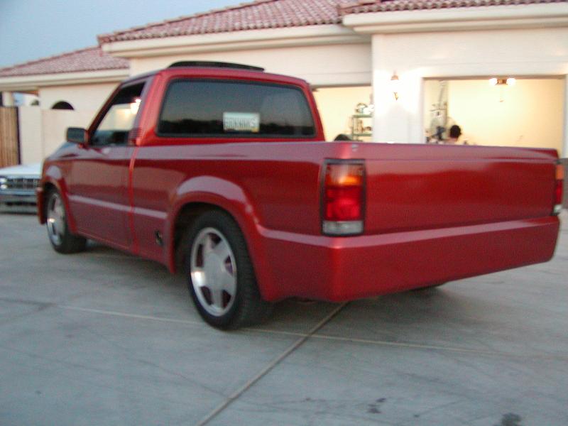 Dodge Neon Burnt Orange with Prowler pearls added. Shaved handles, corner lights, rollpan, tailgate welded shut, Sunroof, 1/8" Steel bedcover, 4x4 fenders and bed. Paint will stay like this till truck is done and then get full color change with graphics. Audi headlights with a custom grill. Chrome license plate bracket.