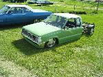 Shaved doors, antenna, cowel, tailgate, emblems, fuel door. toyota 2w front end and billet mazda grille, stock-floored 2 inches to pinch mold, motor dropped 1/2 inch, relocated gastank