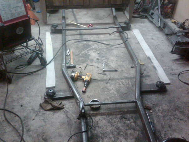 full custom bumper to bumper frame, will have customs upper and lower tubular control arms, full air ride, and cantaliever rear set up