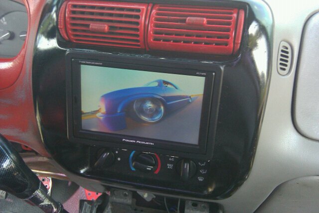 Custom dash paint, Explorer console with 6.6 inch polk mids, 87 Mustang seats.