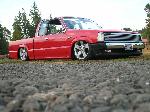 front slam bags with drop spindles, redrill hubs to 5 lug, rear, slam bags with 4 link, bags on top of the long bars, 90 toyota rear end.