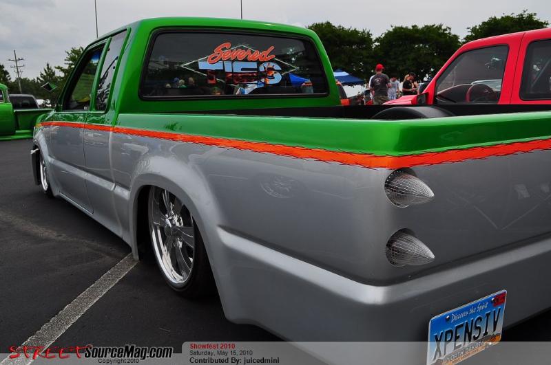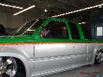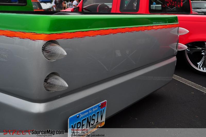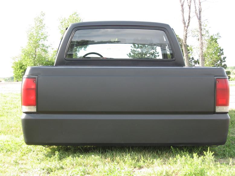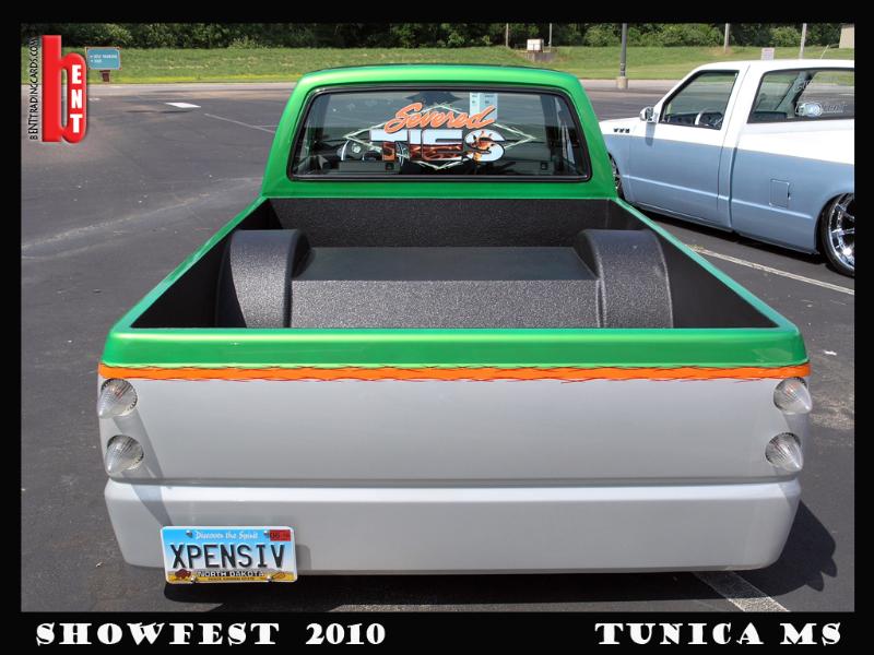 Shaved emblems, mirrors, antenna, wiper cowl, windsheild pissers, door handles, locks, gas filler door, all body seams, cali-combo, and taillights. Frenched clear '59 Caddy taillights, Clear bumper and corner lenses, Billet grille insert, Gas tank removed and fuel cell placed under the bed, Kuryakyn motorcycle mirrors, 4x4 fenders and bed, Inside of bed has completely smoothed sides and floor with wheel tubs and gas filler in floor for fuel cell then sprayed with bedliner, Front bumper has frenched license plate.