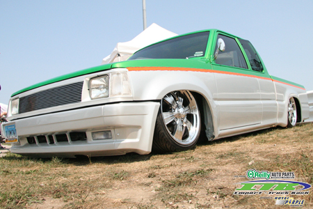 Two-inch drop spindles, four-link, bag over axle, eight 1/2-inch Blitzluft valves and airline, Slam bags, two Viair 380 compressors, 7 gallon tank