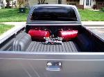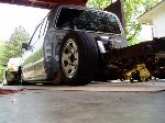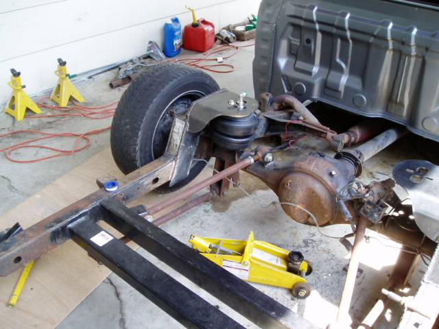 full air ride. 2 M.I.C. 1/2" mass-flow valves, 2 M.I.C. white face gauges, 1/2" air line, 2 compressors, 2 5 gal. tanks, 4 2500 bags, reverse triangulated four link, 6" monster notch. front/back right now.