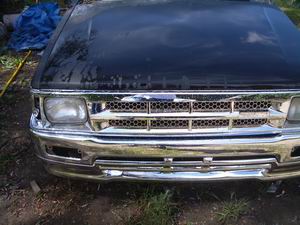 Shaved Gas Door..Sjhaved Tailgate handle..Frenched license plate..Full chrome front end..40x40 SBC Ragtop (if it ever comes)..soon to be painted..R.I.P