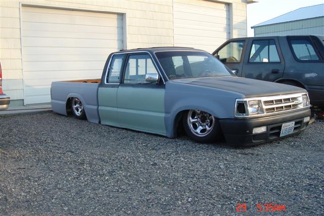 3" body drop, shaved door handles, tailgate handle, tailgate welded shut, hood squirters, wipers, body seams. sliding rag top, yota 4x bumper, chrome grill ,chrome mirrors, few different colors of primer.