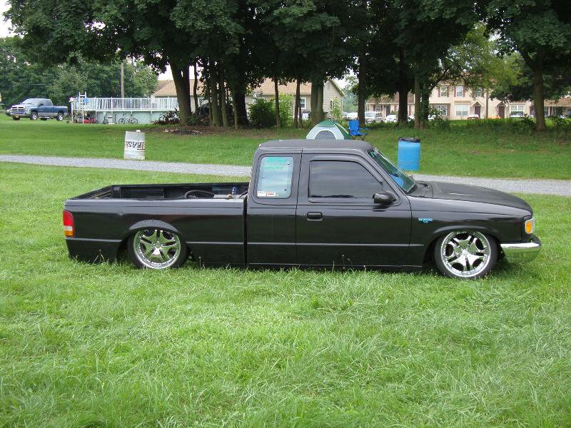 slam bags all around, dropped i-beams, custom 4-link with bags on lower bars