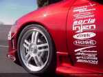 CUSTOM CANDY BRANDYWINE OVER A SILVER METALLIC BASECOAT WITH FIREBALL RED FLAKE, STREET WEAPON DRIFT KIT, KAMINARI RED CARBON FIBER HOOD, APR ALUMINUM WING WITH FLAME EDGES, CATZ FOG LIGHTS