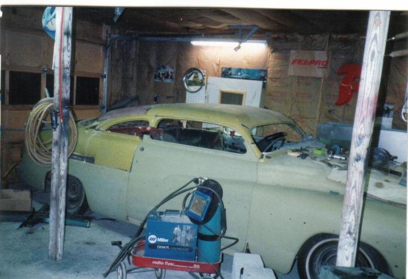 Chopped 4.5 inches in front,7.5 in rear.Channeled 4 inches over 78 Olds Delta 88 frame and floor pan.Frame and floor streched 2 inches to match 1950 Merc wheelbase.Dodge Omni door latches and strikers,Mazda626 trunk latch and cable.