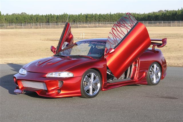 Kandy Apple Red, shaved handles, body lines, bumpers, custom lighting, wing, hood, body kit, lambo doors, custom fenders, Z3 mirrors