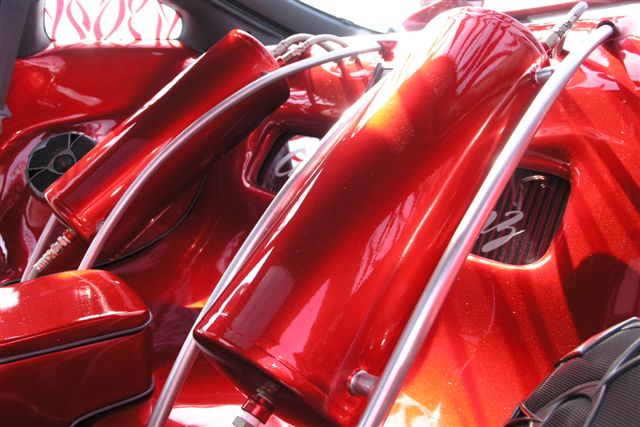 custom fiberglass, 2 tone leather seats, custom carpets / floor mats, custom console / speakerbox, Custom Billet Steering Wheel (that matches my wheels!) & more...