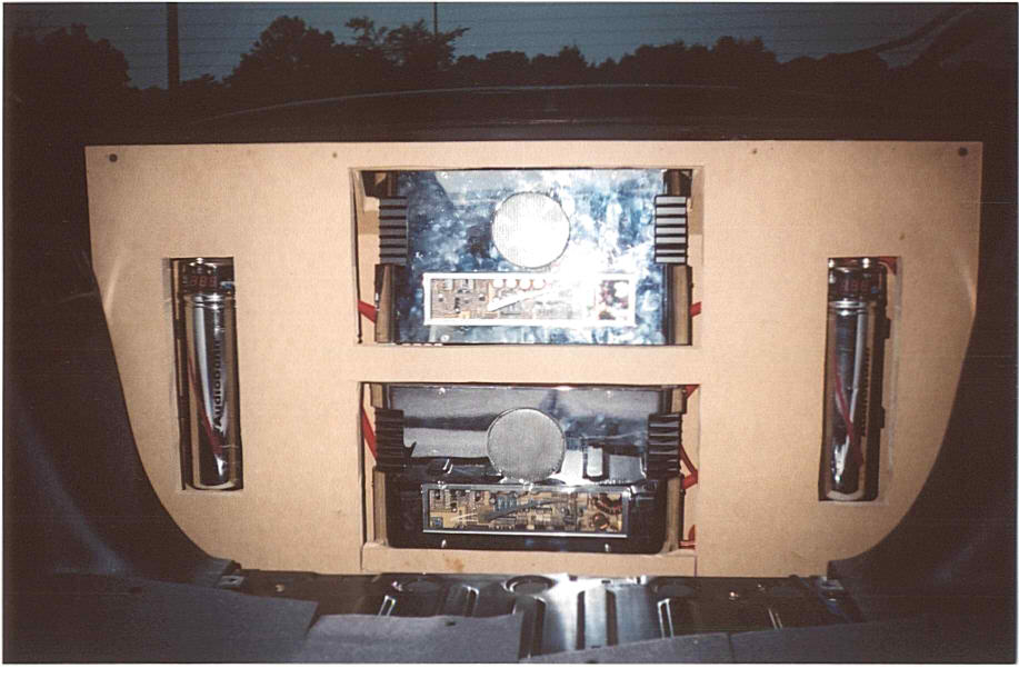 JVC SH-99 MP3 Head unit, 2 Polk GNX 12" Subs, 2 Chrome Audiobahn Amps, 2 Chrome Audiobahn Caps all in custom design box with is still under construction.