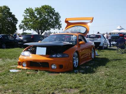 Sensei front piece, Blitz sides and rear, shaved bottom piece of bumper, shaved middle tail, shaved reverse lights, molded handles, shaved keyholes, 2001 Eclipse gas cap, plate frenched back into bumper, 6 1/4 inch PIAA foglights, completey molded, z3 fenders, carbon fiber euros, shaved emblems and corner lights, Carbon fiber hood