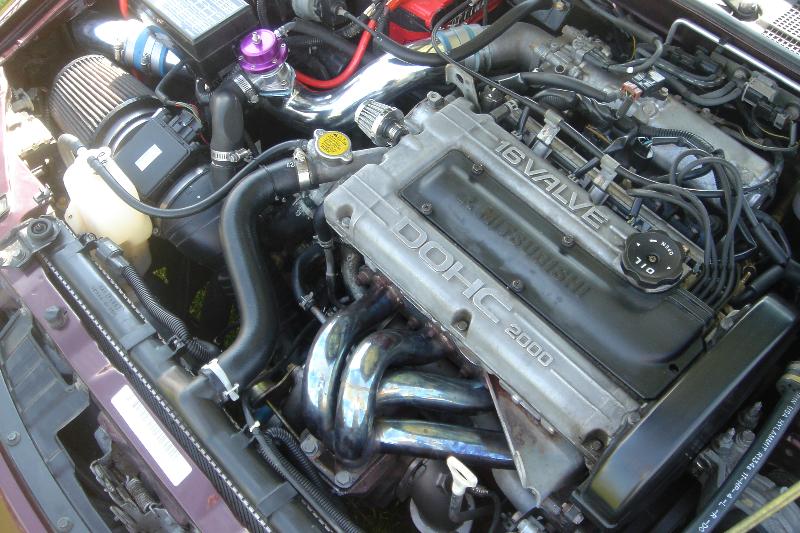 Super 16g turbo, Tubular Manifold, Custom 02 housing, Custom Mid-pipe, 550cc Injectors, Two 12 Inch Radiator Fans, K&N Air Filter, Apexi' N1 Cat-back exhaust, HRC 3" Downpipe, Greddy Type-S blow off valve, Greddy upper and lower intercooler piping, NGK plugs, SPEC stage 3 clutch, Walbro 255 fuel pump, Speed-Source shifter bushings, free mods.