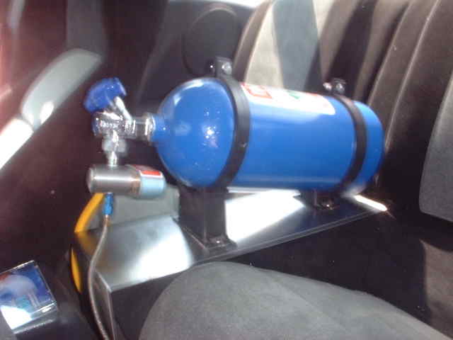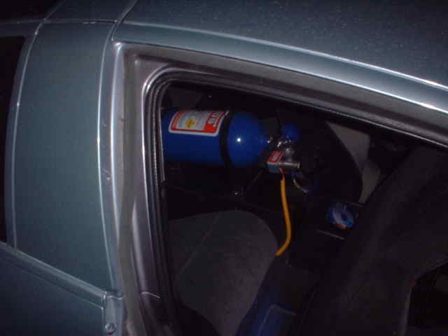 black and gray two tone seats, aluminum dash kit, grant shift knob, reactive racing pedals, custom nos bottle mount, blue neon under dash and seats