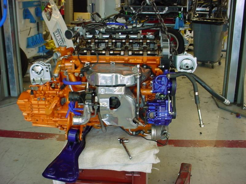 2.0 Turbo, K&N, Greddy Blowoff, APEXi Front Mount Intercooler, Hard Pipe Kit, Bored Over 1mm, Total Seal Rings, Full Port and Polish Head, Greddy Profec B Boost Controller, Greddy Turbo Timer, Magnecor Wires, Injen Polished Intake, All Bolts Replaced With Stainless, Centerforce Clutch, Optima Red Top Battery, Everything Chromed Painted or Polished