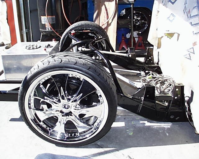 fast bagged on all 4 corners, hand-bent tubing bridge and rear back-half, hand made rear frame rails, 450 vi-air compressor pumping air through 1/2" lines, 3/4" Parker gold valves, 1/2" dumps, toyota 5-lug conversion (front hubs & rotors & re-yoked mitsu driveshaft and 5-speed manual rearend with 373 gears). All new back-half with Pete & Jakes 4-link to put the bags on the bars.hand-fabbed custom bag cups and mounts front and rear, new control arms (lower & upper), sway bar, tie rods, etc. All x-members and rear frame clip allow me to lay frame. Redone all wiring, air lines, and 6 switches. Relocated all new shocks (front & rear)Thanks Justin & Tommy