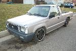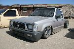 static dropped. two coils cut in the front and three inch blocks in the rear with center leaf pulled.