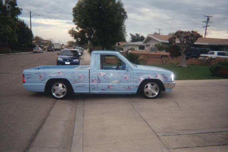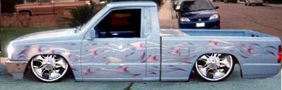 shaved, cut bed for da system, candy blue paint, with flames