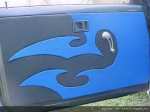 Thanx to Leather Trim Limited of Arlington, TX. Blue and gray tweed mitsu. eclipse bucket seats, custom door and headliner with tribal flames