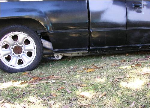 shaved tailgate and handle, shaved bed rails, resprayed in flatt black