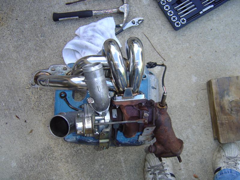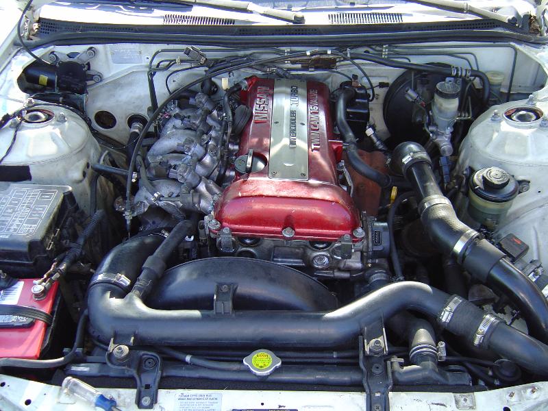 So far: SR20DET Nissan 2.0L Turbo, Equal Length Stainless Manifold, High Flow Intake Manifold, Walbro 255 Fuel Pump, 550CC Injectors, HKS Cams, Front Mount Intercooler, Turbonetics Raptor BOV, and Billet Underdrive Pulleys.